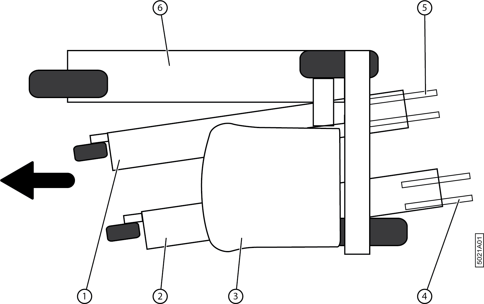 La flèche indique le sens de conduite de la machine. La machine est composée des éléments suivants :
